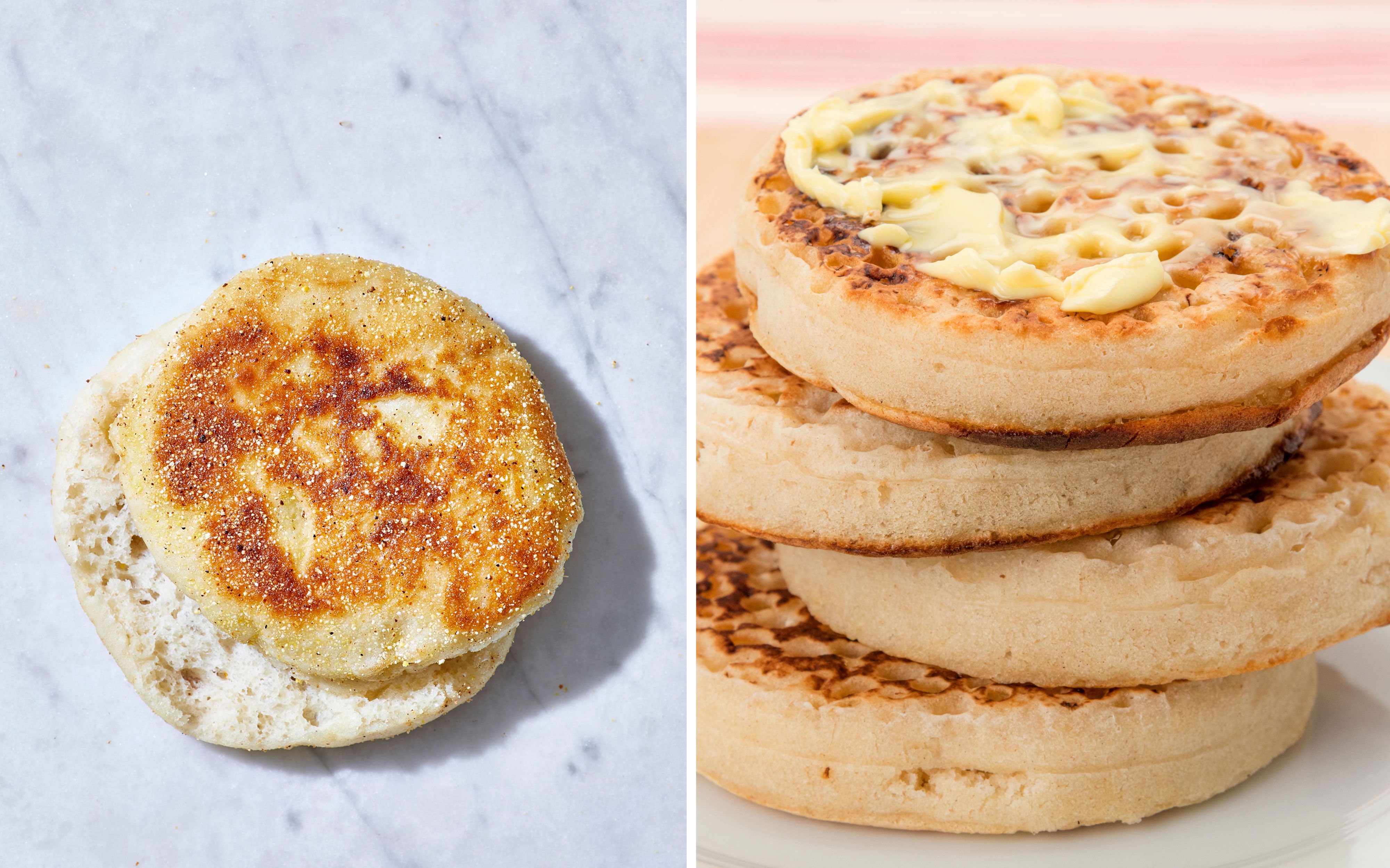 At first glance, crumpets and English muffins look like they were separated at birth and reunited at the toaster.