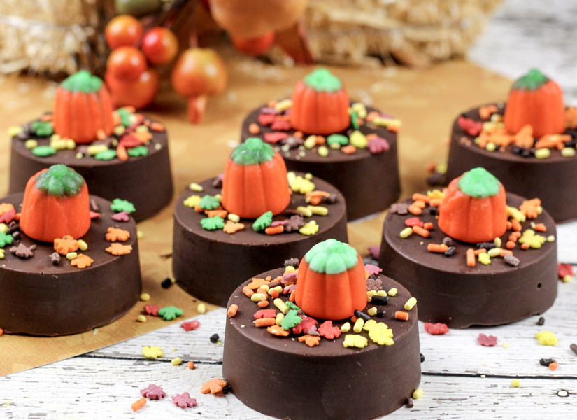 - Immediately add your desired toppings, such as a sprinkle of pumpkin spice, chopped nuts, candy corn, or a drizzle of caramel. Work quickly while the chocolate is still soft to ensure the toppings stick.