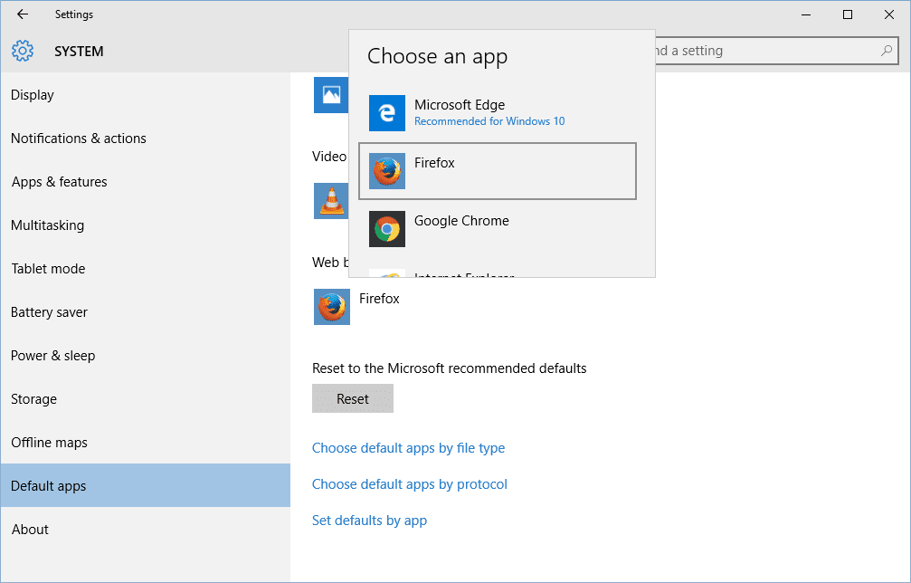 - Click Reset (on the Default apps page) only if things are truly messy.