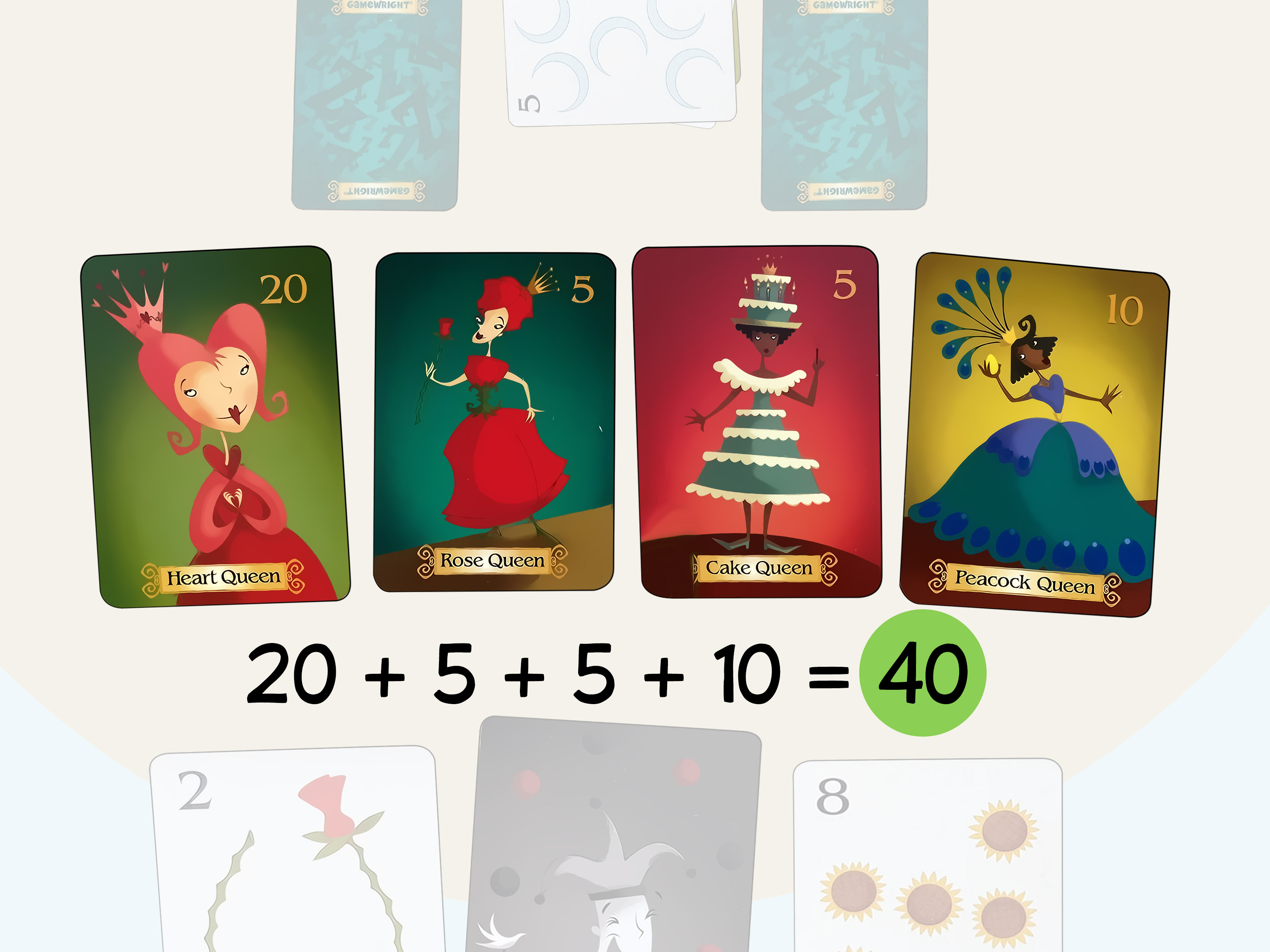 Important detail: you do not need the exact point total. If your queens add up to more than the winning score, you still win. No one gets sent back to royal kindergarten for overshooting.